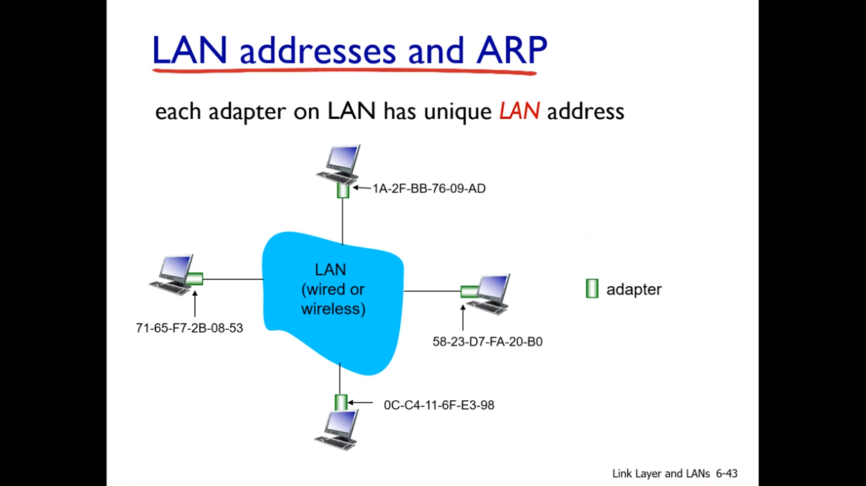 : 어뎁터는 고유의 LAN(MAC) 주소를 가진다